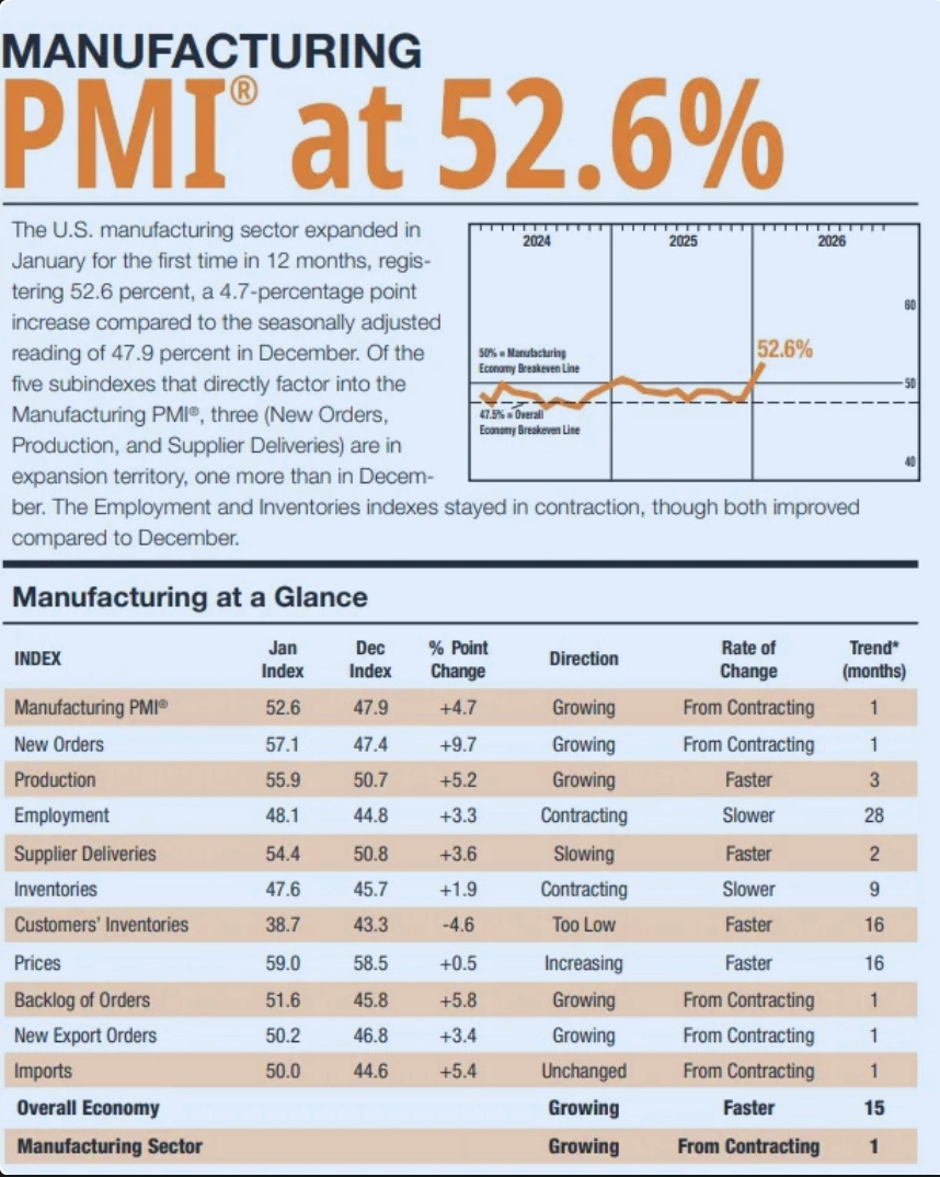 - New Orders: 57.1% (+9.7pp MoM, strongly expansionary)
